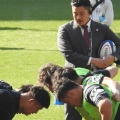 神社の急階段を一気に駆け上がります。